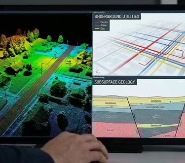 Detailed LiDAR surveys, aerial photography, and photogrammetry for accurate mapping.
